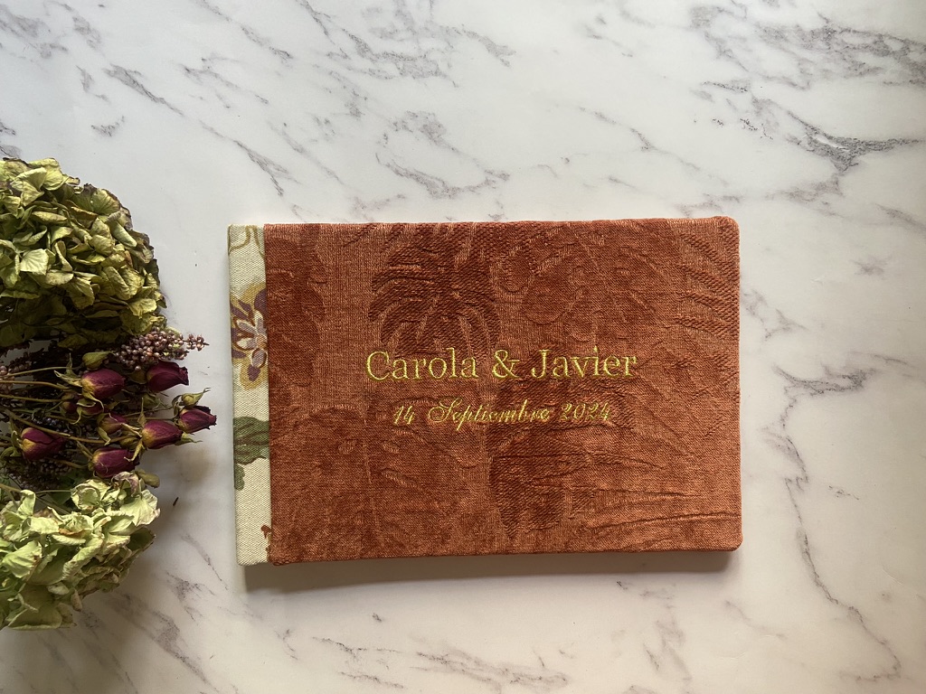 Cada libro se confecciona con telas cuidadosamente seleccionadas, elegidas por su textura, su elegancia y su capacidad de mantenerse bonitas con el paso del tiempo.