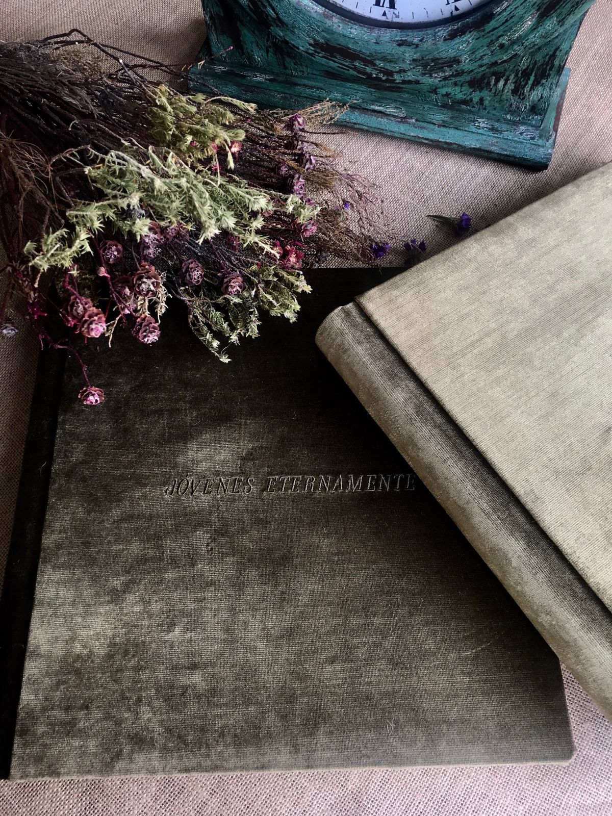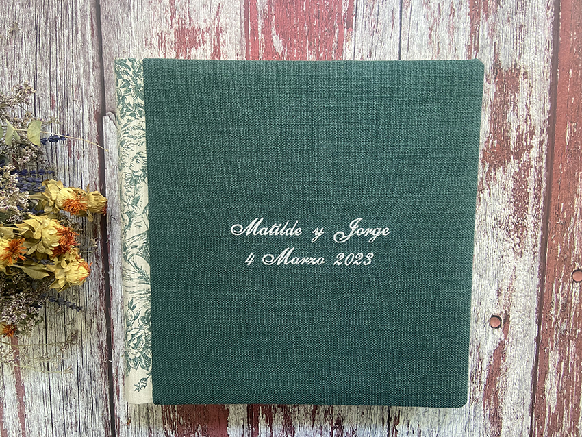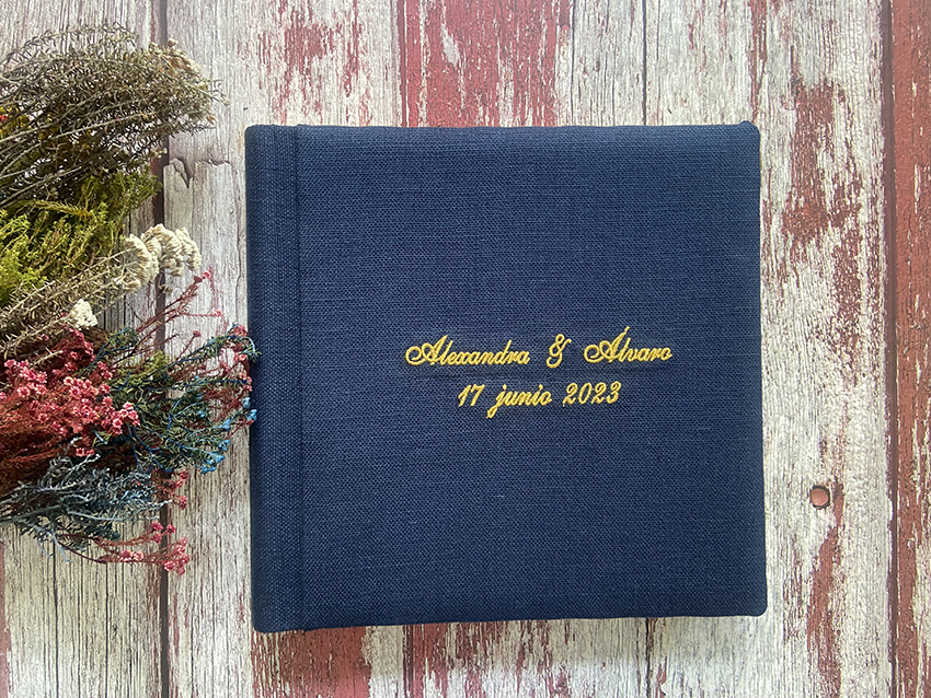 Cada álbum se confecciona con telas exclusivas, bordados con nombres o fechas, y una encuadernación artesanal que resiste el paso del tiempo. Son ideales para regalar a una pareja, una familia o a alguien que valora la belleza de lo tangible.