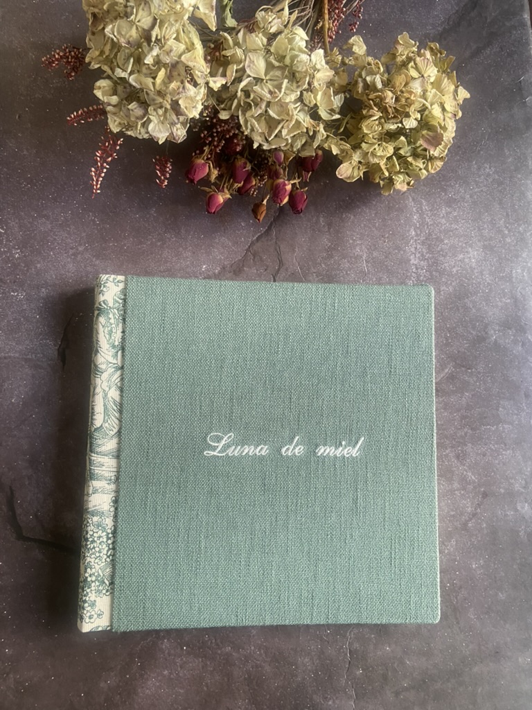 Cada álbum se confecciona con telas exclusivas, bordados con nombres o fechas, y una encuadernación artesanal que resiste el paso del tiempo. Son ideales para regalar a una pareja, una familia o a alguien que valora la belleza de lo tangible.