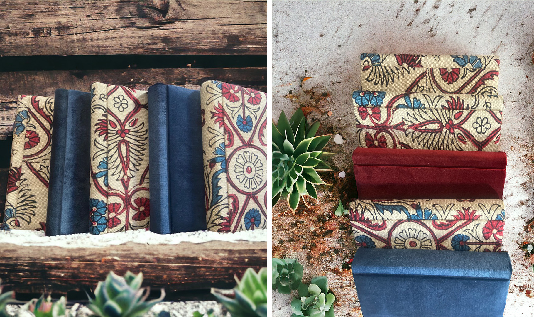 Colores intensos como el fucsia, azul eléctrico, granate o verde oliva están marcando tendencia. ¿Cómo integrarlo en tu libro de firmas de boda? Elige hilos de bordado y telas llamativas o contrastadas para la portada. Los tonos vibrantes también pueden aparecer en las ilustraciones interiores o en los detalles gráficos de cada página. Paleta de colores vibrantes