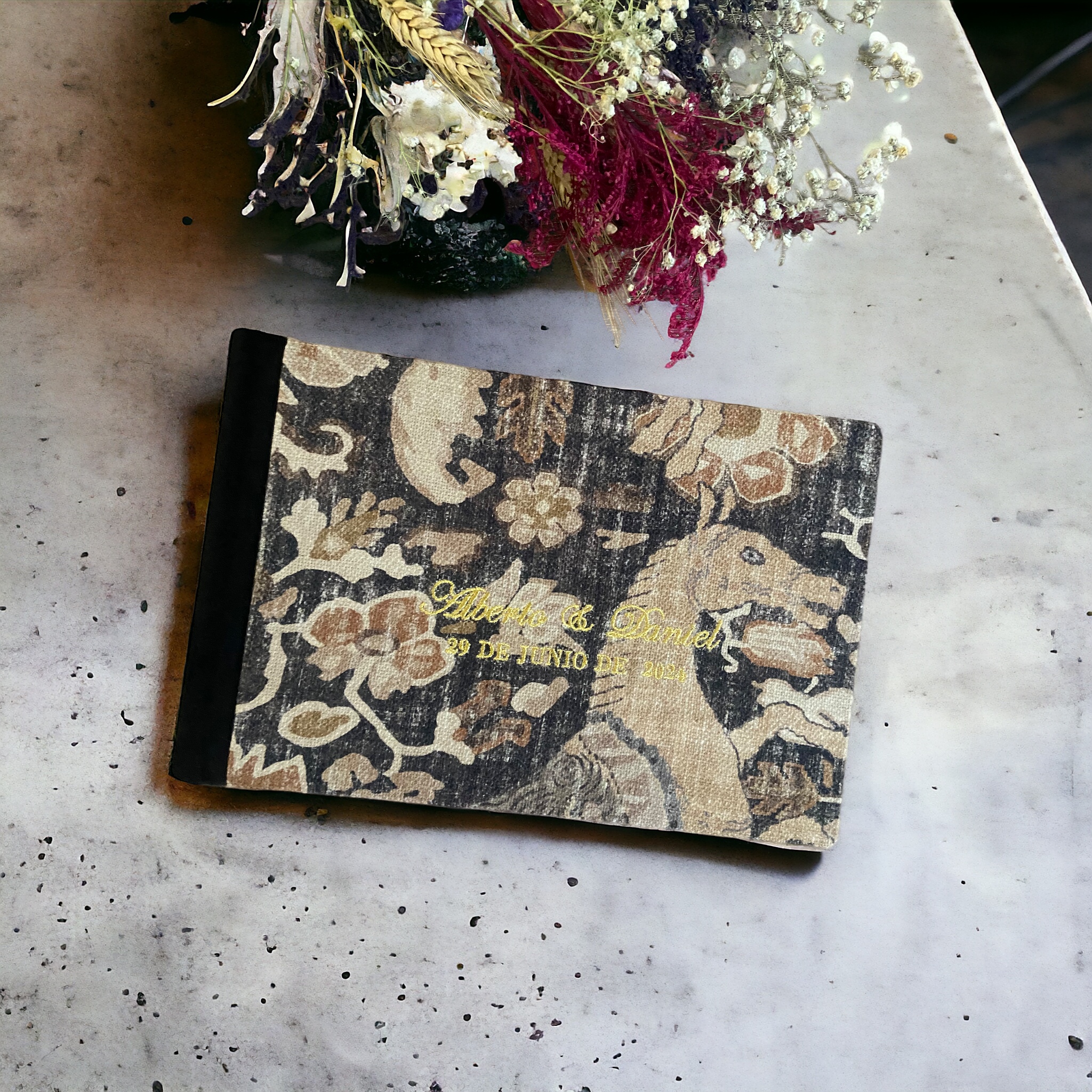 La conciencia ecológica llega al altar. Los novios apuestan por materiales reciclados, flores locales y propuestas responsables. Nuestros libros de firmas de boda están confeccionados a mano con telas seleccionadas y producción local. Incluye una nota explicando los materiales utilizados para hacer de tu recuerdo algo consciente.
