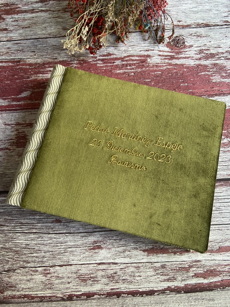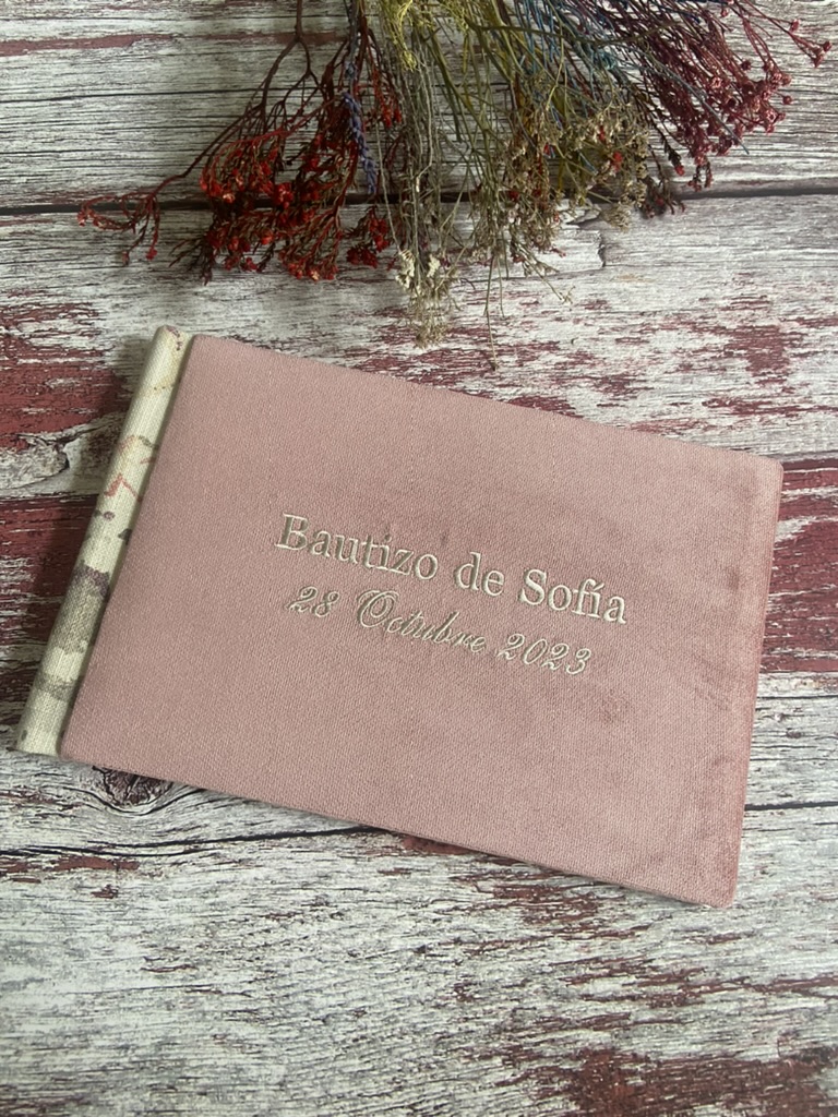 Libros de Firmas con Acuarela: Arte y Emoción en Cada PáginaLos libros de firmas con acuarela son una de nuestras propuestas más demandadas. Estos libros combinan la delicadeza del arte en acuarela con la personalización del evento, creando un espacio donde cada mensaje de los invitados se enmarca en belleza y color. La acuarela añade un toque muy especial y arte único, haciendo que cada libro sea una obra de arte en sí misma. Libros de Firmas con Acuarela Libros de Firmas con Testigos y Familiares Impresos: La Huella de Quienes Más ImportanEntendemos la importancia de recordar a quienes comparten este momento con nosotros. Por eso, ofrecemos libros de firmas con testigos y familiares impresos, una opción que permite pre-imprimir los nombres de personas especiales, asignándoles un espacio dedicado en el libro. Esta opción no solo facilita la organización del evento, sino que también asegura que el recuerdo de cada ser querido quede inmortalizado de manera destacada. Libros de Firmas para Bautizos Libros de Firmas Personalizados con Telas y Textos Bordados: Elegancia y CalidezPara aquellos que buscan un toque de elegancia y calidez, nuestros libros de firmas personalizados con telas y textos bordados son la opción perfecta. Estos libros combinan la belleza de los materiales textiles con la precisión del bordado, ofreciendo un resultado tanto visual como táctilmente impresionante. Cada libro se convierte en un tesoro de recuerdos, con la durabilidad y el encanto que solo la tela y el bordado pueden ofrecer.