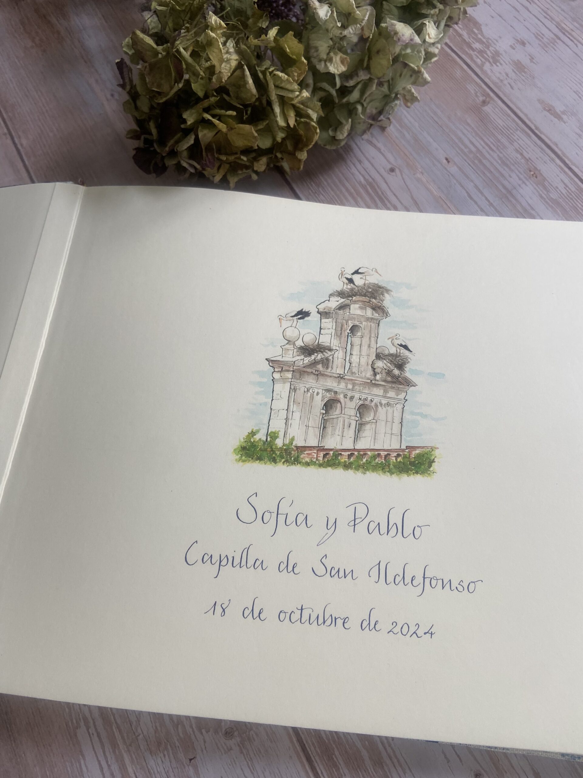 Para las parejas que buscan algo verdaderamente único, ofrecemos la opción de añadir una acuarela personalizada basada en una fotografía especial. Nos puedes enviar una imagen que sea significativa para vosotros (ya sea una foto de pareja o un lugar especial), y nuestro equipo de artistas creará una ilustración única que se puede incluir en el libro. Esta acuarela puede aparecer en la portada o en alguna de las páginas interiores, dándole un toque artístico y personal.