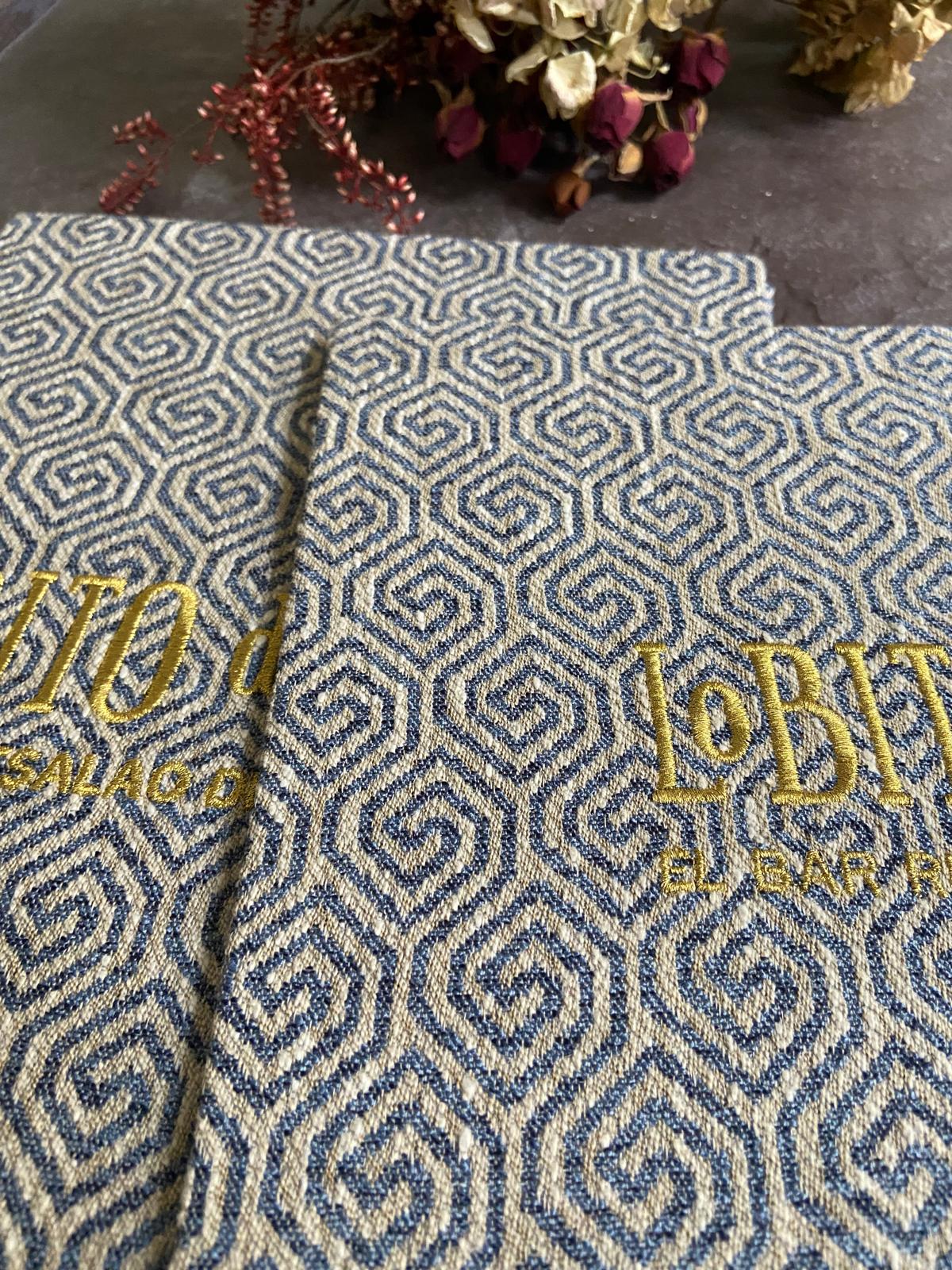 La elección del textil es clave. Las telas exclusivas para menús aportan textura, peso y carácter. El bordado —siempre sutil— añade identidad sin imponerse.