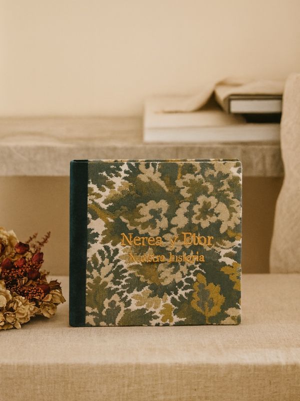 📘 Álbum analógico prediseñado – Estampado con terciopelo · Tamaño 30×30 · 50 hojas (100 caras)