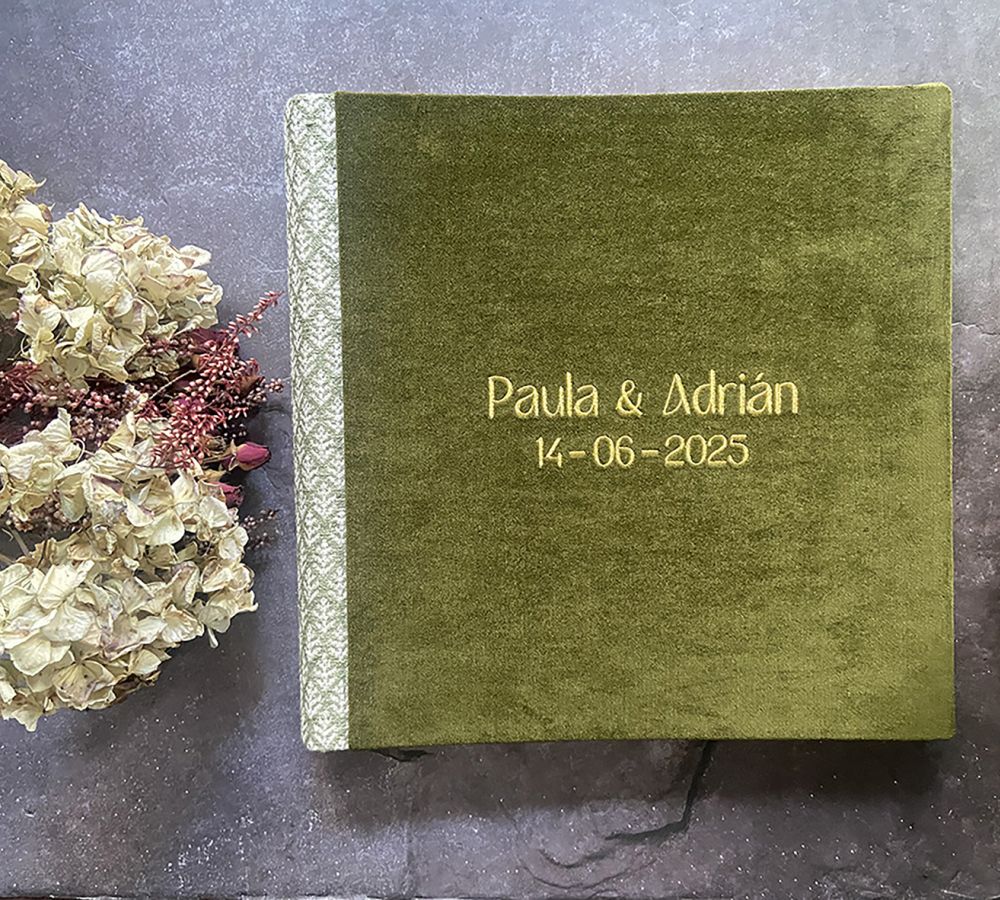 ✍️ Tú solo personalizas el bordado: elige el texto, la fuente y el color del hilo.✨ Hecho a mano, con separadores de papel de seda que cuidan cada página.