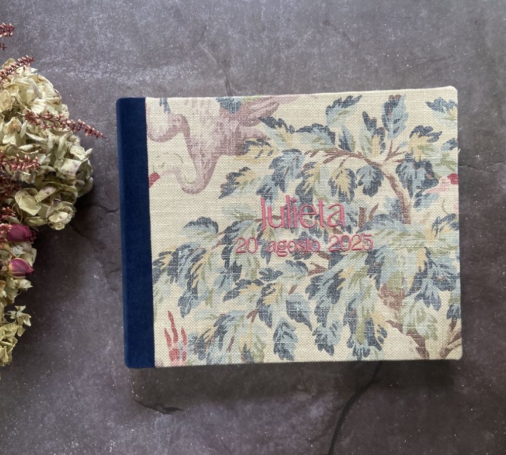 Tapa dura con telas artesanales y textos bordados. Configura tus opciones en el formulario de compra y recibe un álbum único para conservar toda la vida.¿Cómo personalizar el álbum de fotos? PINCHAR PARA VER EL TUTORIAL