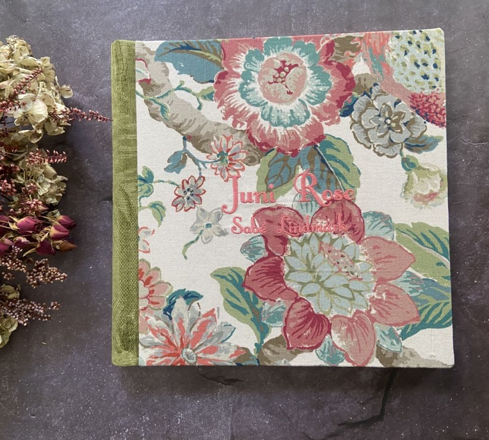 Personalización con Telas Elegidas del Catálogo y Bordados:  Estos elementos exclusivos darán un toque elegante y distintivo a tu libro.