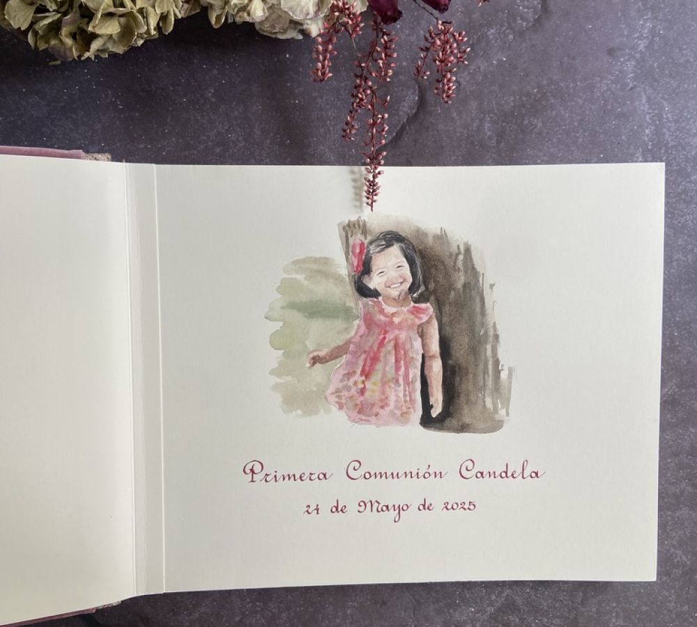 Impresión de Acuarela y Textos para Bautizo y Comunión: Añade un toque especial a tu libro con  acuarelas, creadas especialmente para bautizos y comuniones.