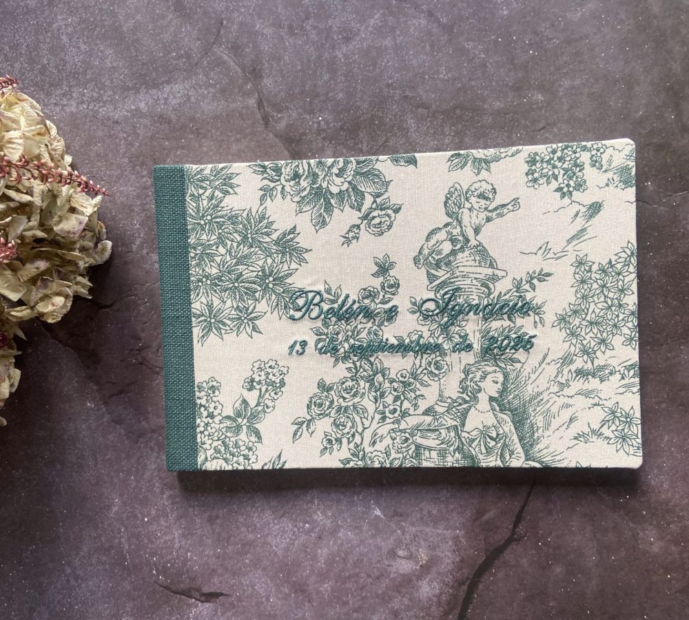 Si el cliente no elige caligrafía ni acuarela, el libro se entrega con las páginas interiores en blanco.