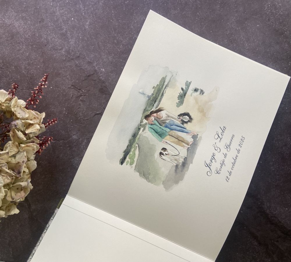Personalización con una Foto de los Novios: Si deseas una acuarela basada en una foto de los novios, también ofrecemos este servicio.