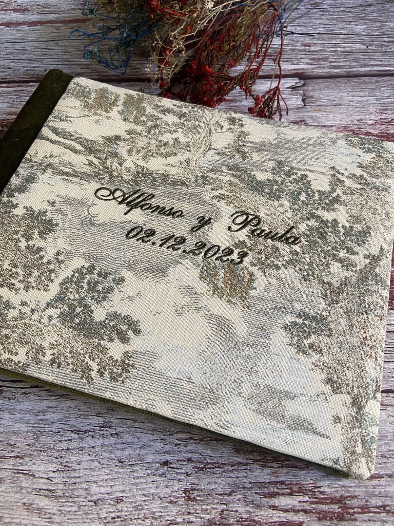 En La Broderie, ofrecemos una variedad de álbumes de fotos en papel, cada uno con sus propias características únicas. La principal diferencia entre ellos radica en el tamaño y color de las hojas, permitiéndote elegir el que mejor se adapte a tus necesidades. Si estás pensando en regalar un álbum de fotos para conservar de manera especial tu reportaje fotográfico de boda, te recomendamos optar por nuestros tamaños familiares o grandes. Estos tamaños son ideales para pegar imágenes cómodamente.Para asegurar una correcta fijación de tus fotografías, es importante utilizar un adhesivo especial diseñado específicamente para este tipo de álbumes. Si tienes dudas sobre qué producto usar, no dudes en consultar a nuestro equipo de expertos, quienes estarán encantados de asesorarte. Además, cada hoja de nuestros álbumes incluye un separador de papel vegetal, una característica esencial para proteger tus fotografías y mantenerlas impecables a lo largo del tiempo. Con un álbum de La Broderie, tus recuerdos estarán seguros y presentados con elegancia.Ver más*Como novedad para este año, debes saber que estos álbumes también están disponibles sin las hojitas de papel vegetal. Por tanto, si eres una novia/o que se va a casar próximamente y quiere un álbum de firmas personalizado (para las firmas de testigos y para fotos analógicas), lee muy atentamente este post.Puedes solicitar tu álbum con 60 u 80 páginas cartulina en color crema o negro, en función del total de imágenes que quieras pegar. Quizá te preguntes por qué no ofrecemos más hojas en cada álbum, la explicación es sencilla. Al tratarse de un álbum artesanal para pegar fotos, la encuadernación de las páginas está hecha a mano y la tensión de las telas sobre las tapas es la justa para que el resultado se vea elegante, no arrugado, y con la apertura correcta. Si se incluyen más pliegos, corremos el riesgo de que el álbum de boda entero se pueda romper.