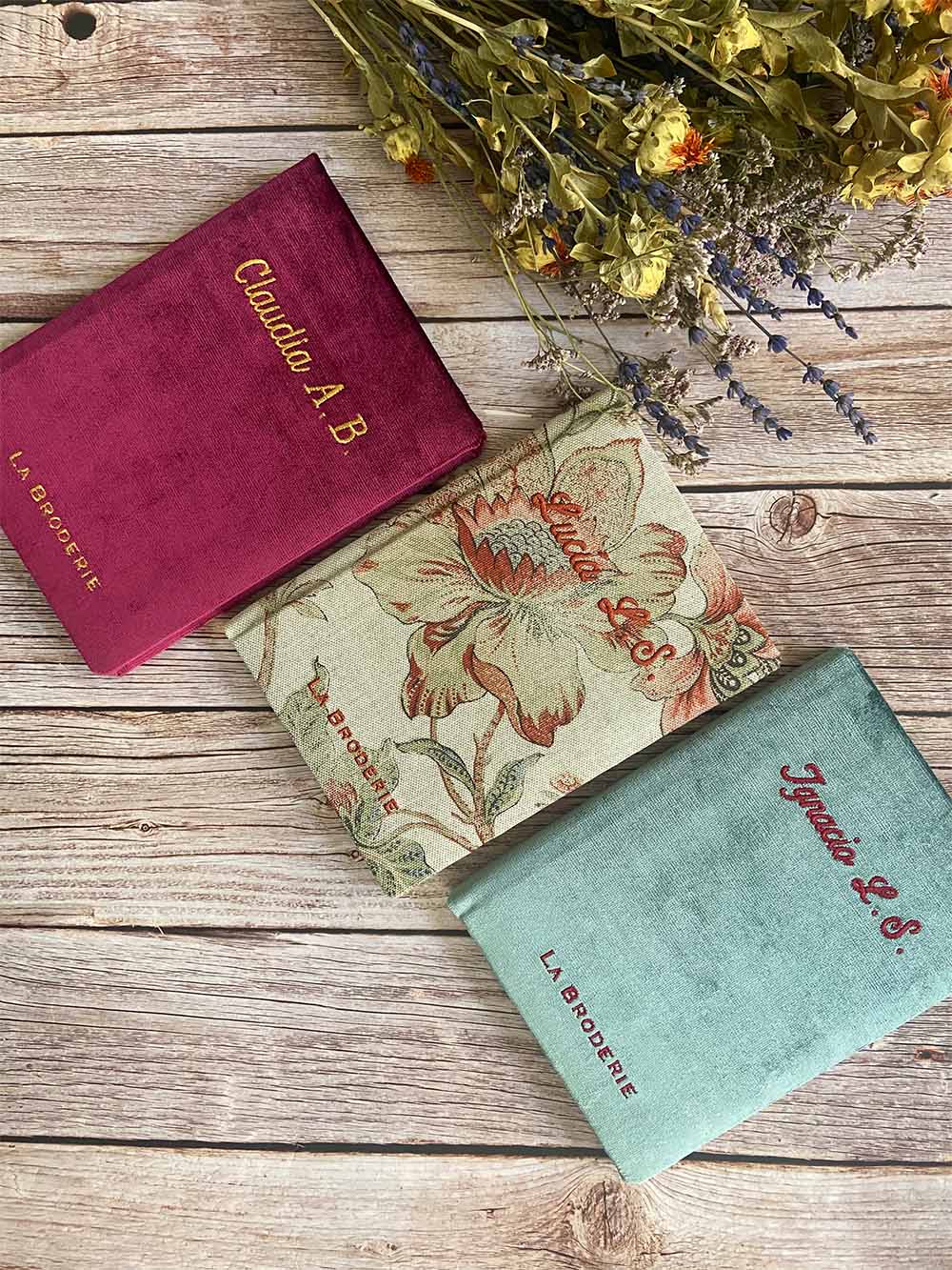Para aquellos que necesitan mantener todo en orden, nuestras carpetas personalizadas y archivadores personalizados son la solución perfecta. Estos productos no solo son funcionales, sino que también añaden un toque de estilo a cualquier escritorio. Se pueden personalizar con telas de tu elección y bordados que reflejen tu estilo personal. Papelería artesanal