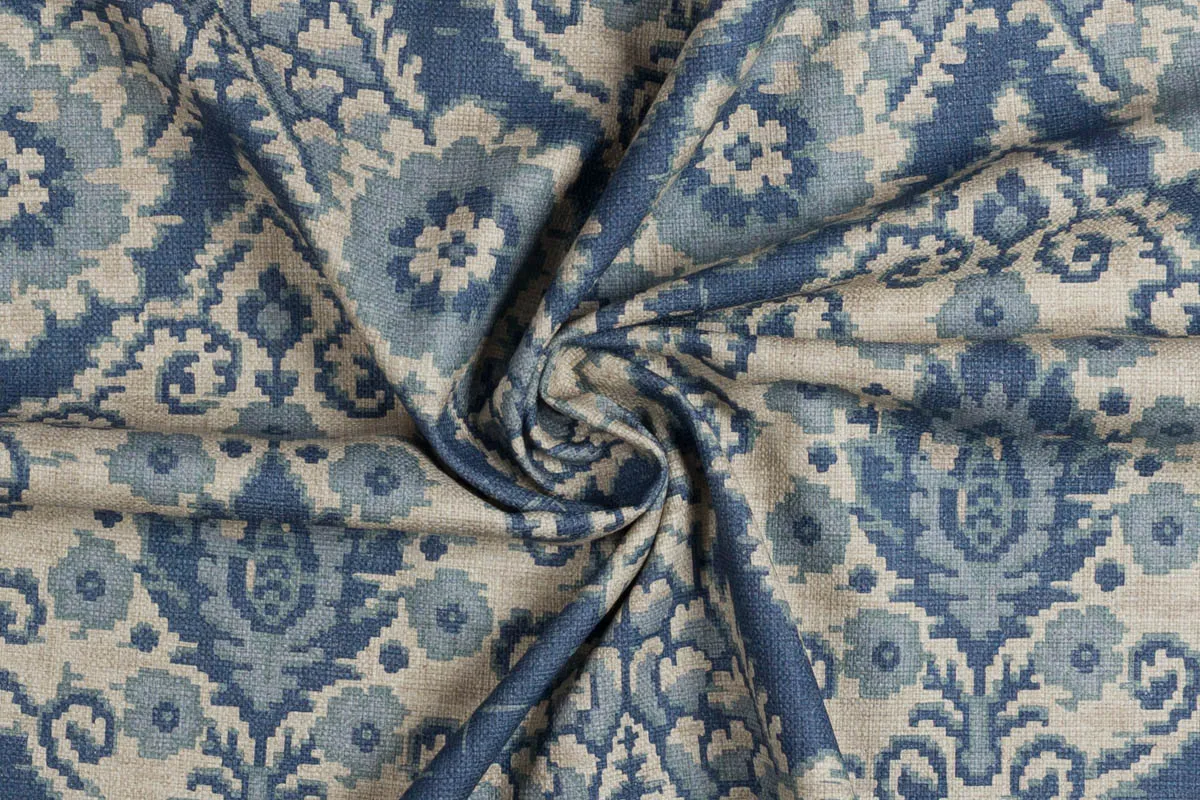 «Erato Blue Baby», un tejido en un sofisticado tono azul bebé, una mezcla de alta calidad de algodón, poliéster y lino.