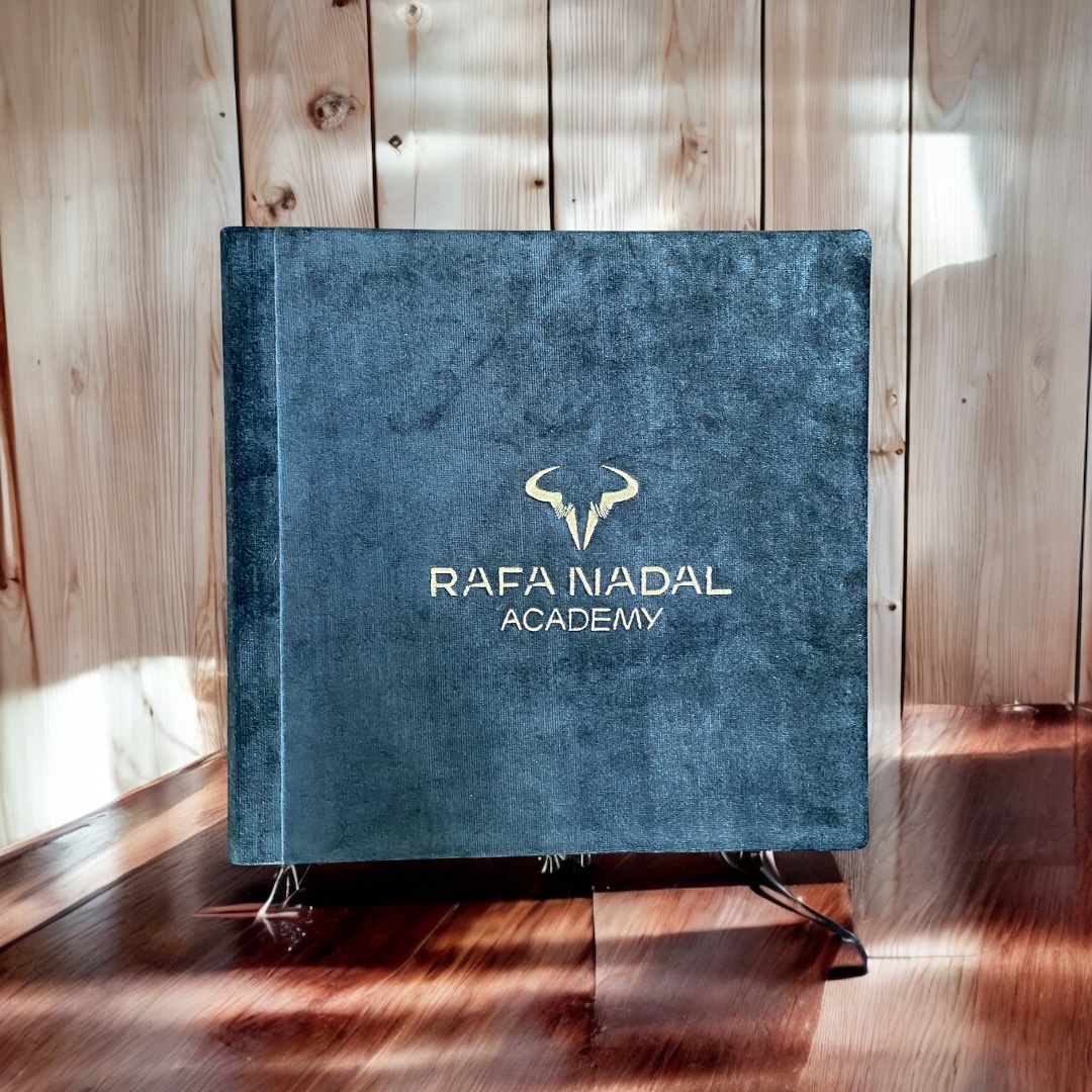 En La Broderie nos enorgullece presentar uno de nuestros últimos proyectos más especiales: el libro de visitas personalizado creado para la prestigiosa Rafa Nadal Academy. Esta pieza, confeccionada completamente a mano, representa lo mejor de nuestro saber hacer en encuadernación artesanal, bordado a medida y selección de telas exclusivas.